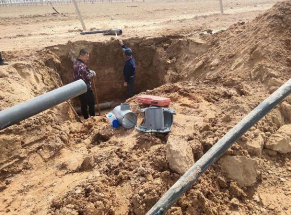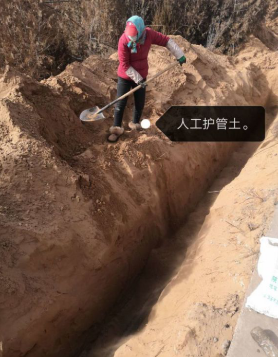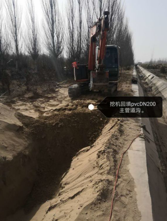 鋪設(shè)深為1.7米PVC 200管道600米;鋪設(shè)深為1.6米,寬為1.1米;PVC 110管道1200米;鋪設(shè)PE 20管80000米;安裝間隔1米的旁通7000米;安裝110變75鐵立桿100個(gè)。