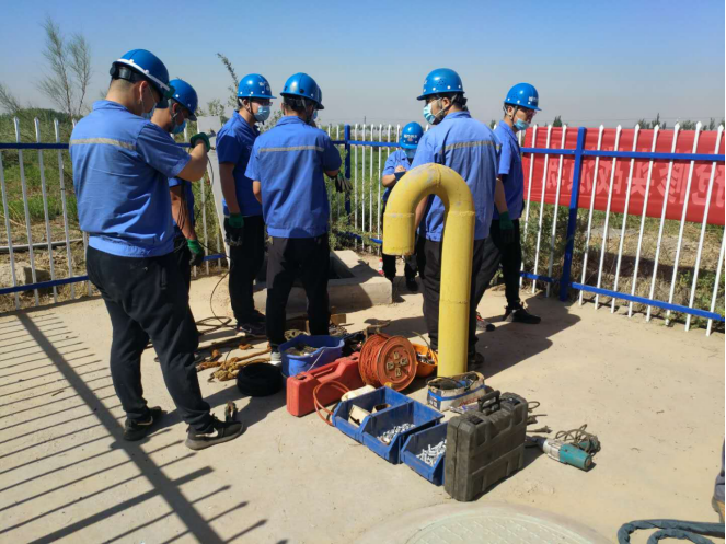 三、安全員對提下泵前各項工作進行檢查,是否正確佩戴安全防護用品、是否斷電、對井室進行先通風、后對有害氣體進行檢測,檢查井室內有無對工作有影響的雜物等,簽下井作業(yè)票,確保安全后,作業(yè)人員下井工作。