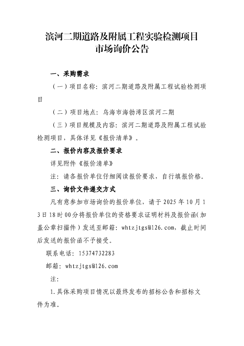 濱河二期道路及附屬工程實(shí)驗(yàn)檢測(cè)項(xiàng)目市場(chǎng)詢價(jià)公告