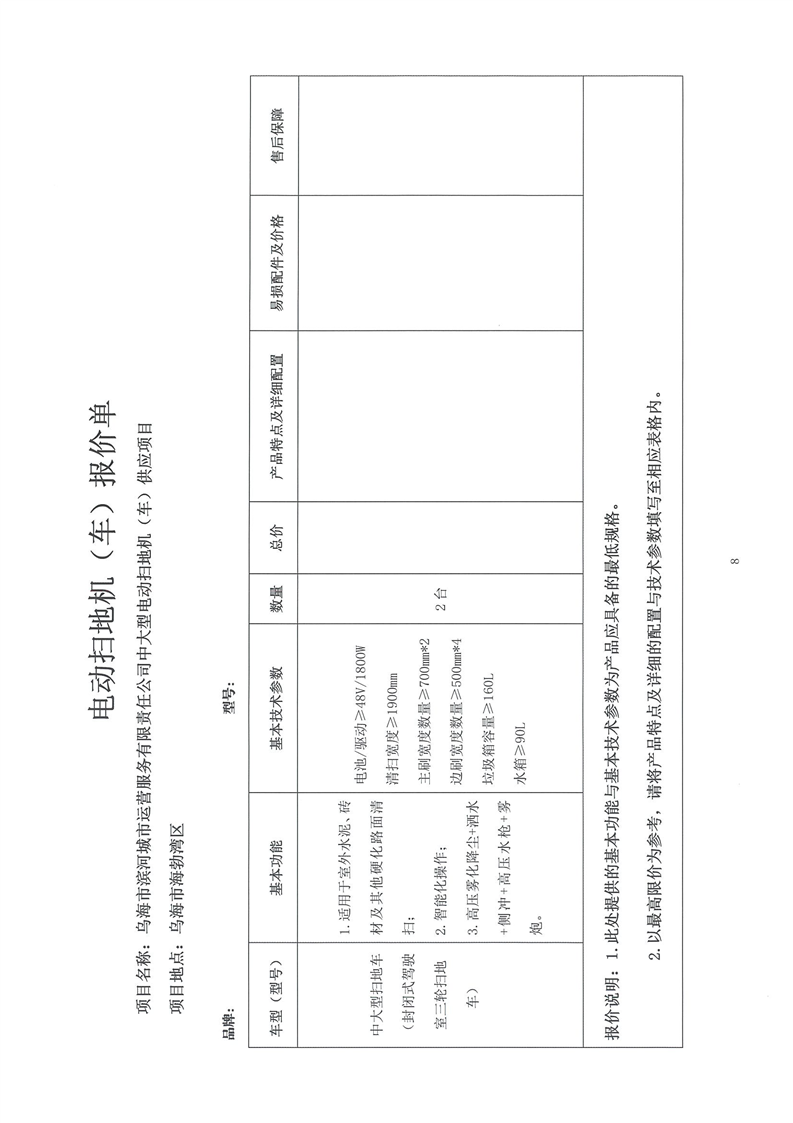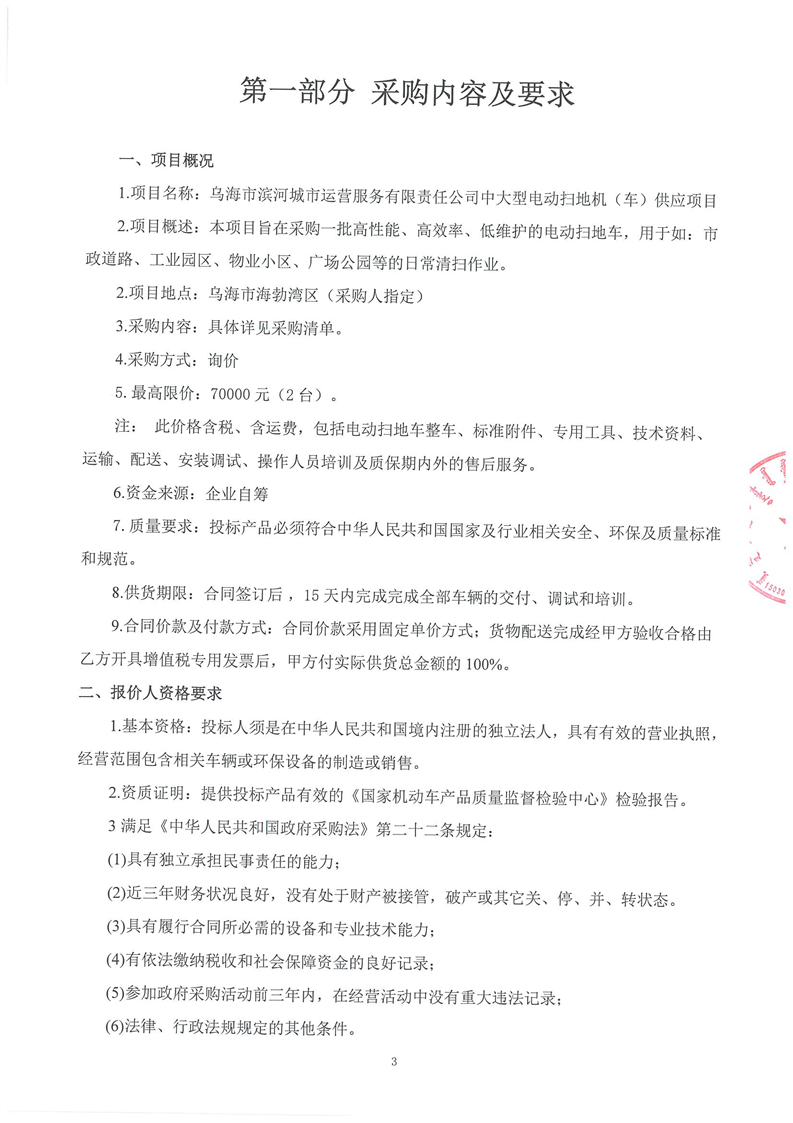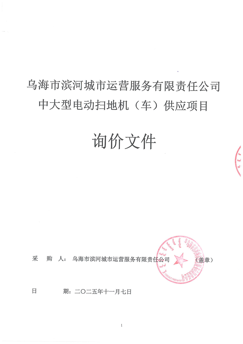 烏海市濱河城市運(yùn)營(yíng)服務(wù)有限責(zé)任公司中大型電動(dòng)掃地機(jī)(車(chē))供應(yīng)項(xiàng)目詢價(jià)文件