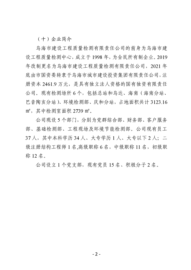 - 2025-03-10烏海市建設(shè)工程質(zhì)量檢測有限責(zé)任公司2024年度信息公開報告