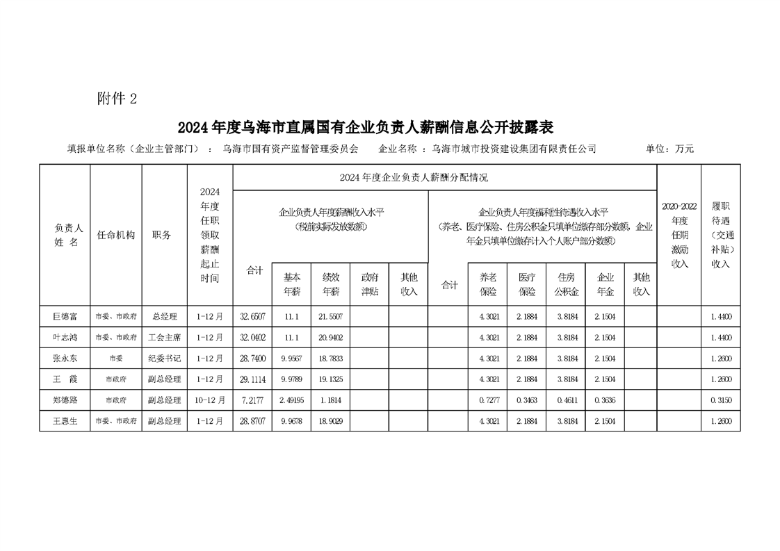 2024年度烏海市直屬國(guó)有企業(yè)負(fù)責(zé)人薪酬信息公開披露表