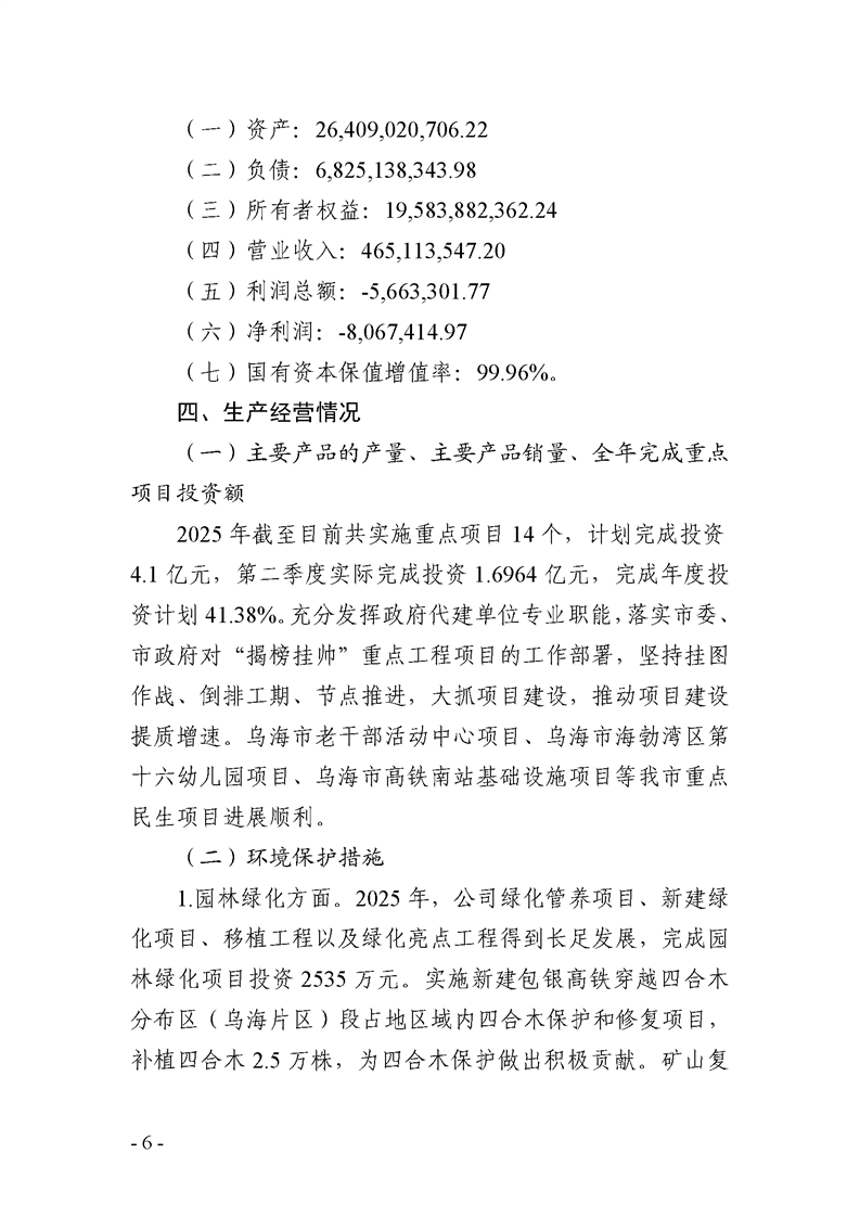 - 2025-10-21烏海市城市建設(shè)投資集團(tuán)有限責(zé)任公司 2025年度第三季度信息公開報告