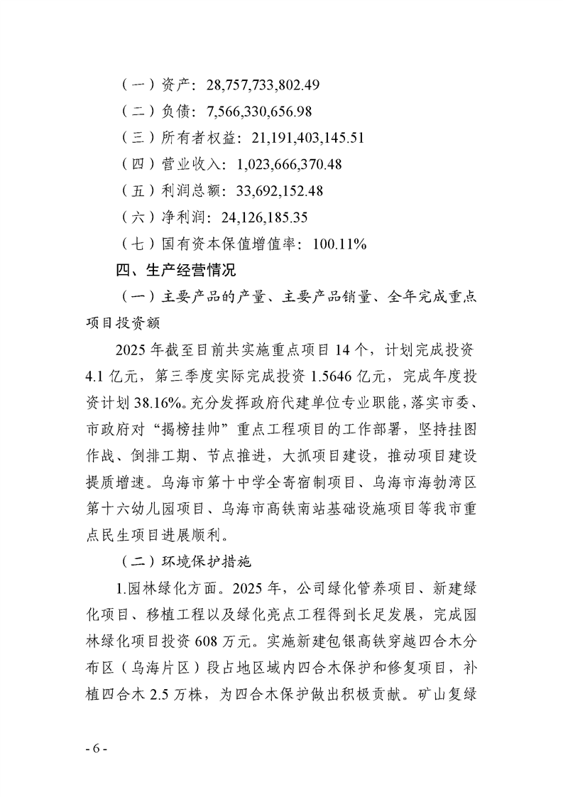 - 2025-04-23烏海市城市建設(shè)投資集團有限責(zé)任公司 2025年度第一季度信息公開報告