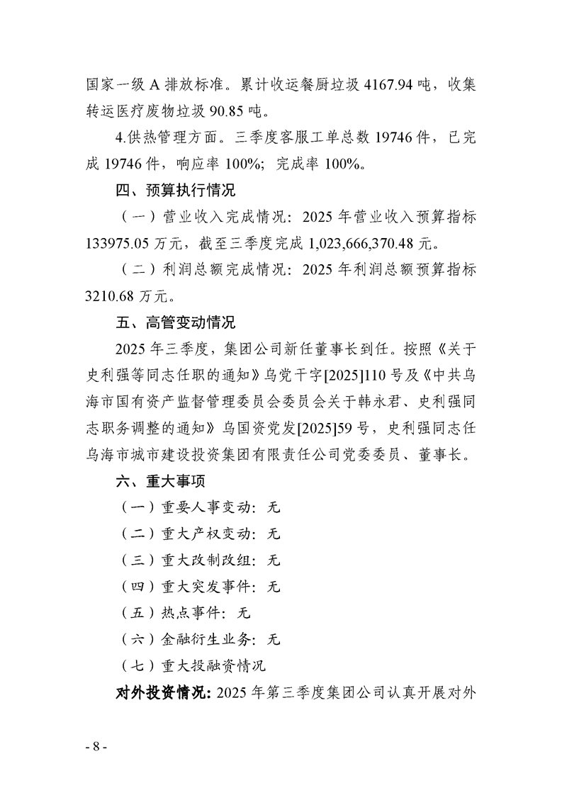 - 2025-07-25烏海市城市建設(shè)投資集團有限責(zé)任公司 2025年度第二季度信息公開報告