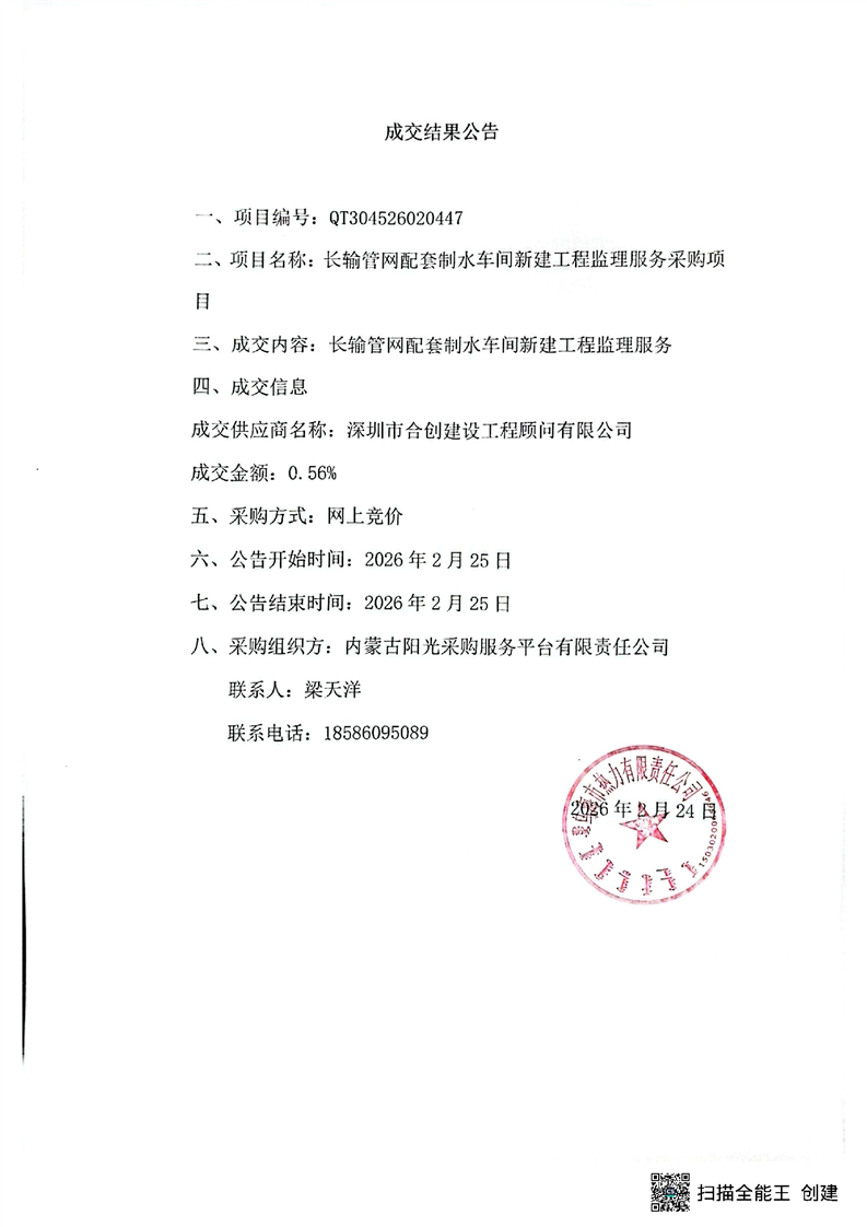 - 2026-02-25長輸管網(wǎng)配套制水車間工程全過程跟蹤造價服務成交結果公告