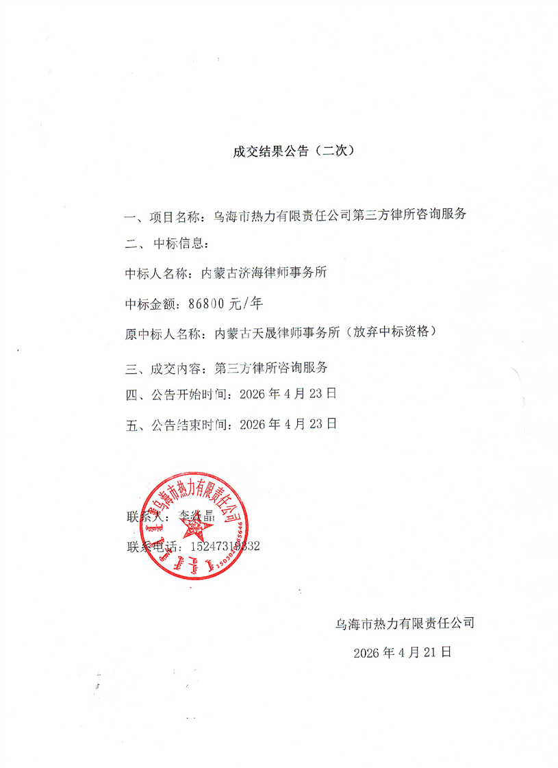 - 2026-04-21烏海市熱力有限責(zé)任公司夏季、冬季檢修機(jī)械、零次網(wǎng)機(jī)械租賃服務(wù)【招標(biāo)公告】