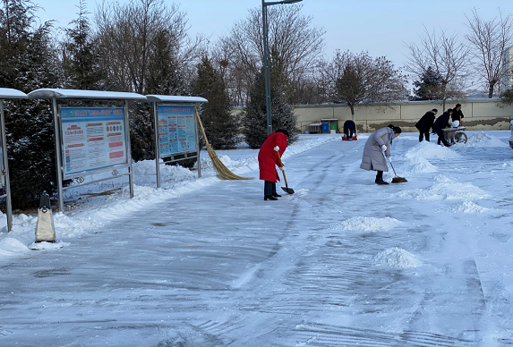 星期一一大早,迎著越過甘德爾山的曙光,市投資集團(tuán)公司全體干部職工聯(lián)合濱河區(qū)公安分局及物業(yè)公司工作人員一起投入到清掃積雪的行動(dòng)中。大家分工明確,配合緊密,掃雪、鏟雪、推車,有條不紊。不到一個(gè)小時(shí),就將院內(nèi)清掃干凈,恢復(fù)如初。